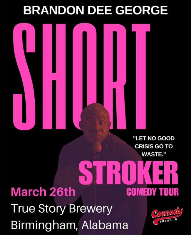 Get ready for a night packed with laughs! Brandon Dee is hitting the stage live with his "Short Stroker" Comedy Tour. Expect sharp jokes, hilarious stories, and a vibe that only an in-person show can deliver. Don't miss out on the fun—come see Brandon Dee bring the house down with his unique style and quick wit!